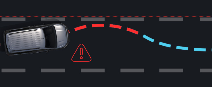 Šī aktīvā drošības sistēma tiks nodrošināta, kad ievērosiet ceļa joslu ierobežojumus. Kad sistēma konstatēs, ka ir apdraudējums nejaušā veidā šķērsot satiksmes joslu, stūres mehānisms palēnām tiks koriģēts, lai automašīna saglabātos sākotnējajā satiksmes joslā.