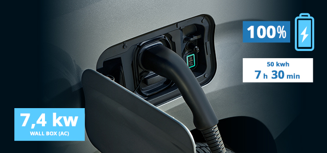 Jaunais “E-Doblò” aprūpēts ar uzlabotu dzinēju, kuram ir 50 kWh baterija, pateicoties kurai tikai ar elektrību iespējams nobraukt 280 km (vadoties pēc WLTP) un sasniegt maksimālo 130 km/h ātrumu. Nulles CO2 emisija un ātra uzlādēšana līdz 100 kW ar līdzstrāvu (DC).